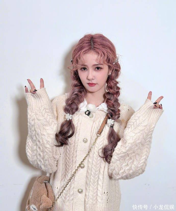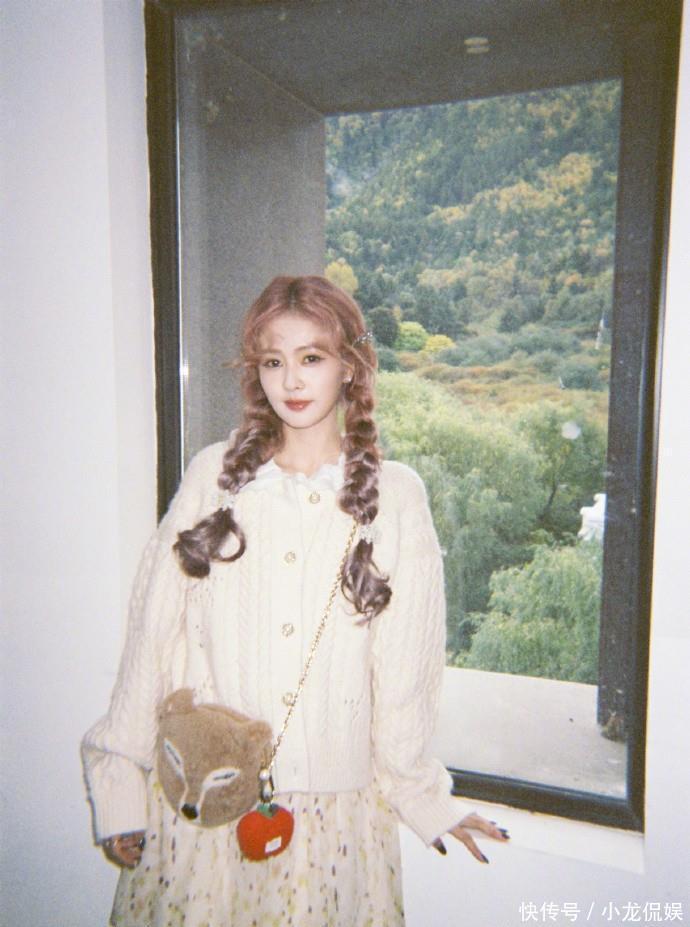 杏色麻花毛衣开衫搭配同色系长裙白鹿的这款穿搭又展现出她的浪漫气质不仅有着一种温暖柔和的氛围感同时充满了秋冬季节的温馨气息。